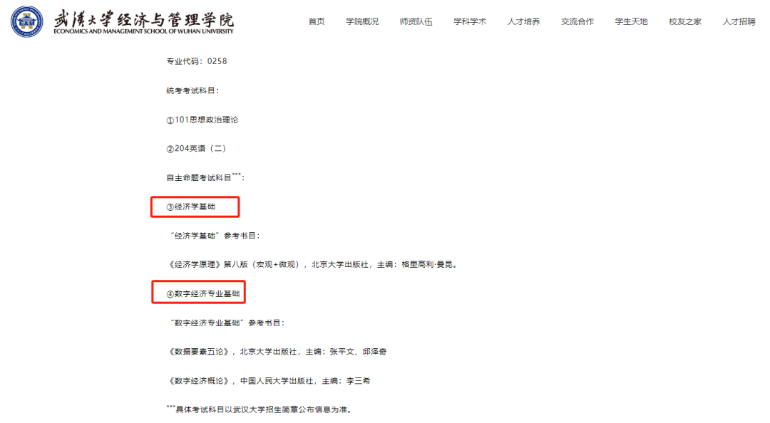 調(diào)整:武漢大學(xué)發(fā)布2026級非全日制數(shù)字經(jīng)濟碩士招生信息,原本的“396經(jīng)濟類綜合能力”科目改為“經(jīng)濟學(xué)基礎(chǔ)”。